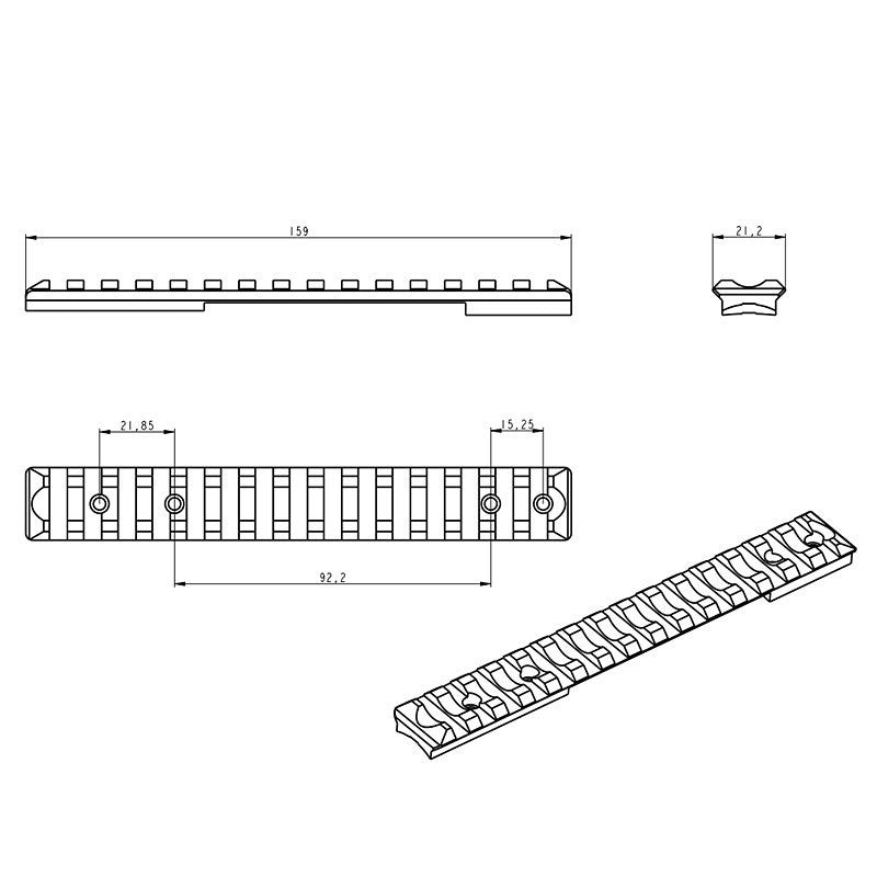 Picatinny rail [scope base] for installation of scope rings with Picatinny interface.
