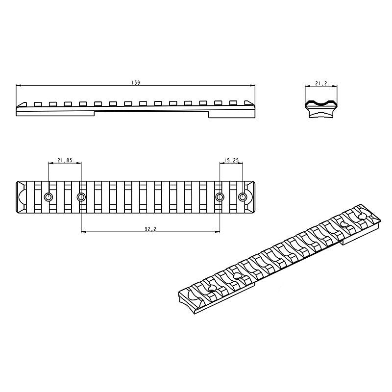 Picatinny rail [scope base] for installation of scope rings with Picatinny interface.