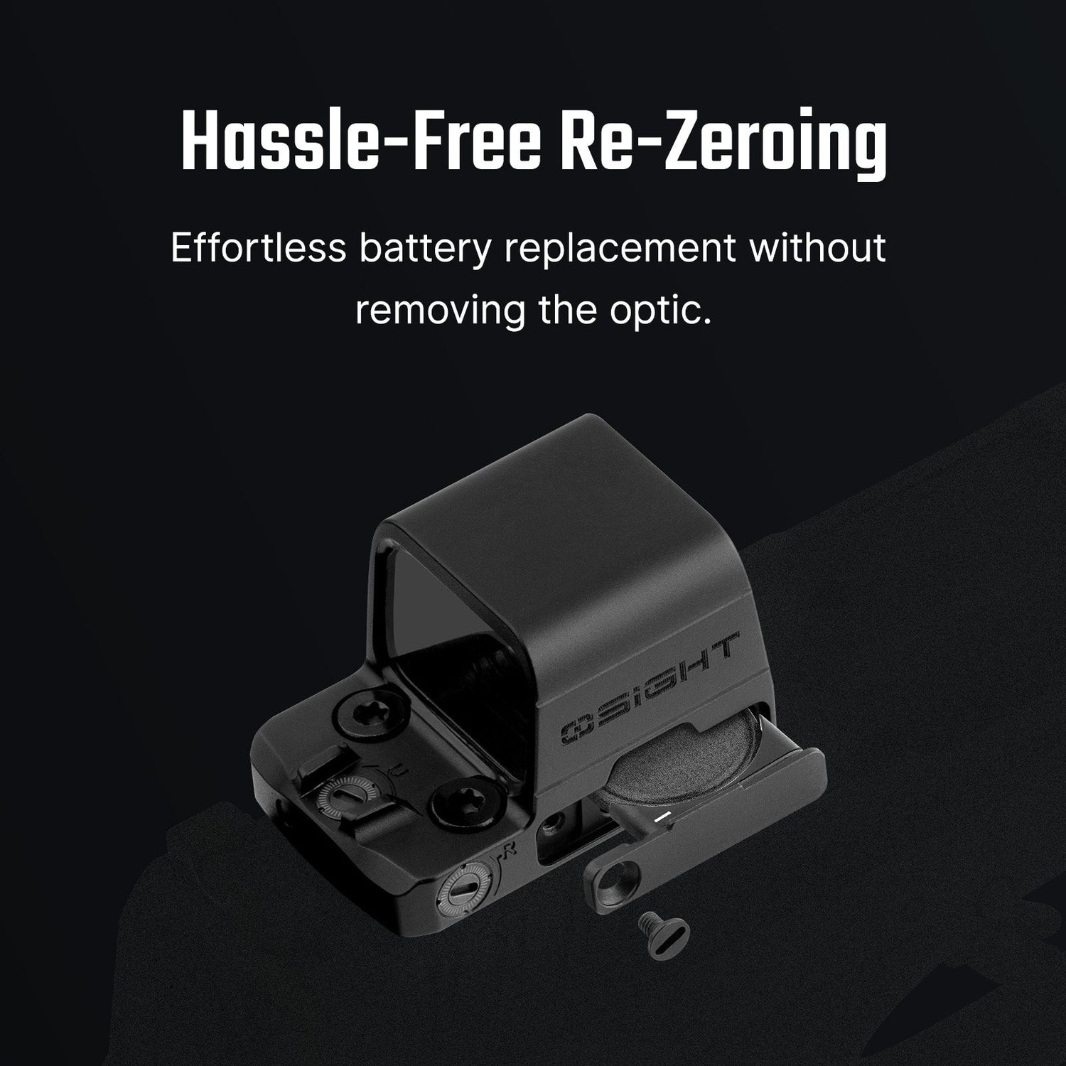 Side Load Battery: Easy CR1620 battery replacement without removing the optic, preventing the need for re-zeroing.