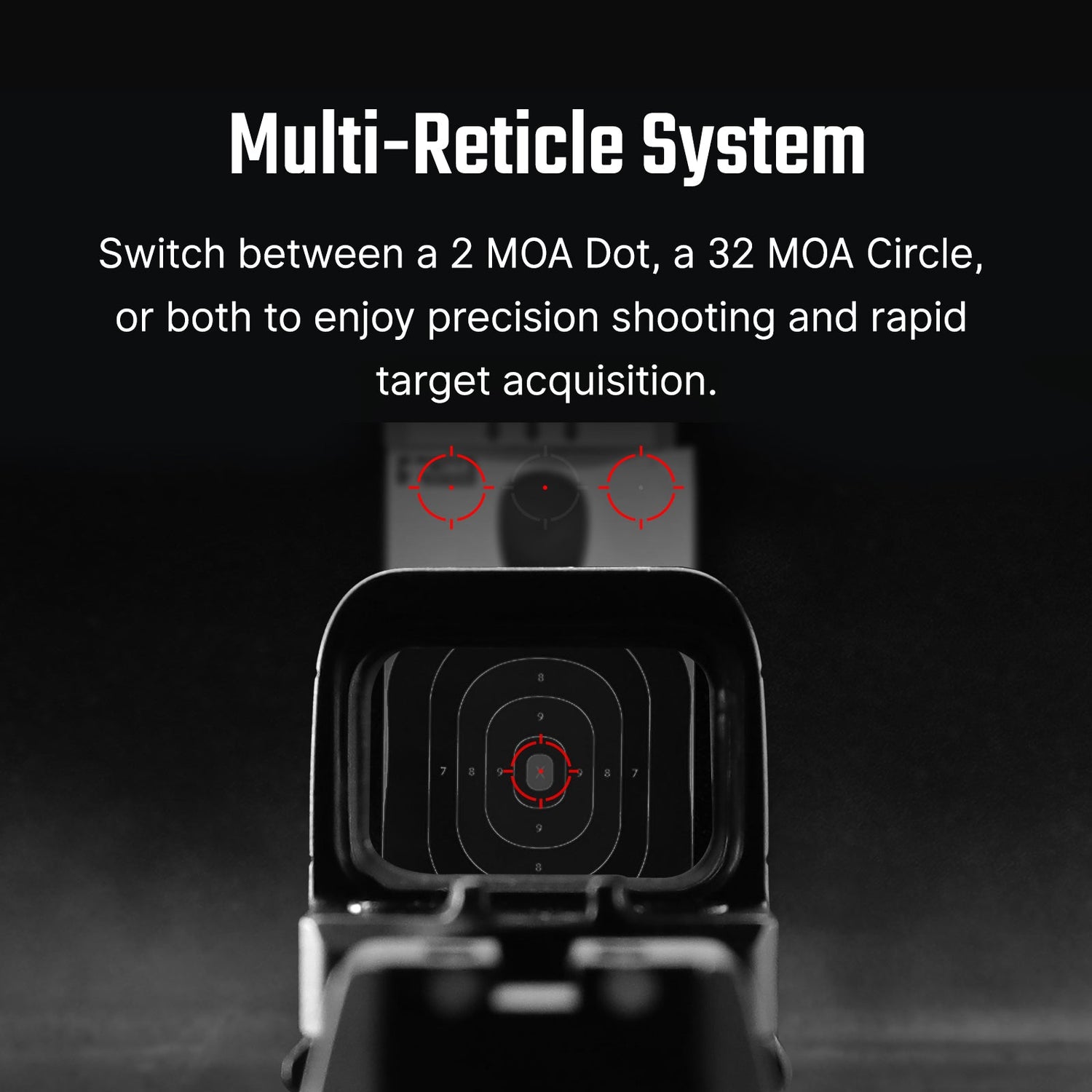 2 MOA Dot & 32 MOA Circle: Choose between dot-and-circle, dot-only, or circle-only reticles for any shooting scenario with a sharp, bright aiming solution.