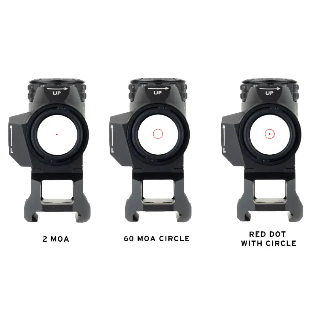 Reticle: Dot (2 MOA), Circle (60 MOA), Dot + Circle