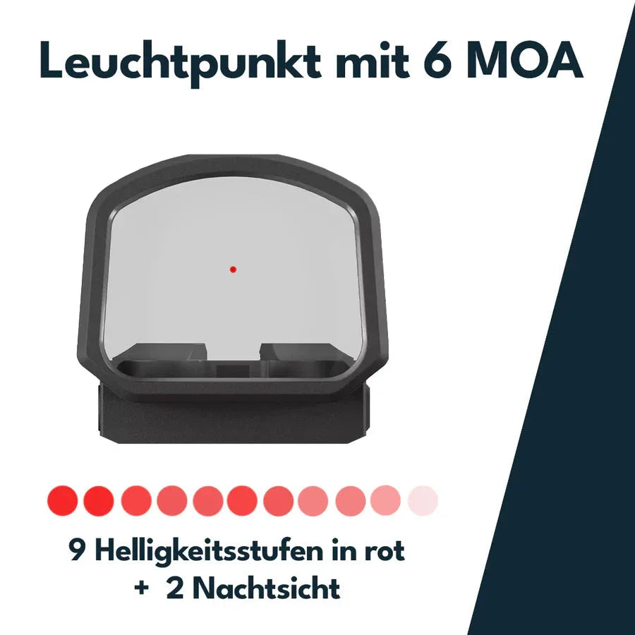The larger performance coated aspherical lens provides a clear field of view for faster target acquisition from the draw and target to target transitions. The aircraft alloy housing has been reinforced and an integrated base plate has been added as well as a new aluminum battery tray to increase reliability on slide mounted applications.
